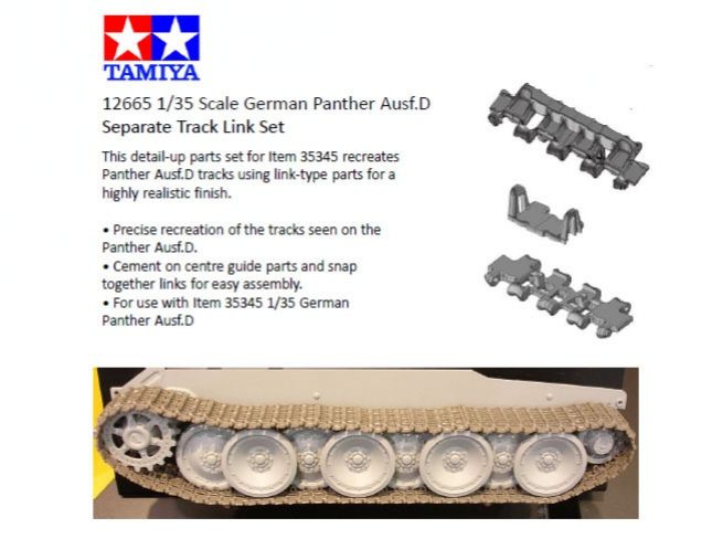 Plastové článkové pásy pro model Panther Ausf.D od firmy Tamiya.
