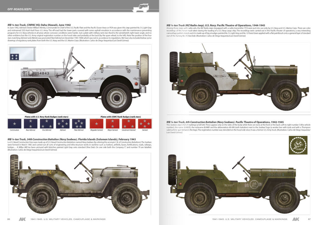 Tato kniha obsahuje historické fotografie a technické informace o barvách a symbolice, stejně jako vysoce kvalitní profily amerických vojenských vozidel 2. světové války. Toto je nezbytná publikace pro fanoušky amerických vozidel 2. světové války a nevyčerpatelná studnice inspirace a znalostí pro každého modeláře.