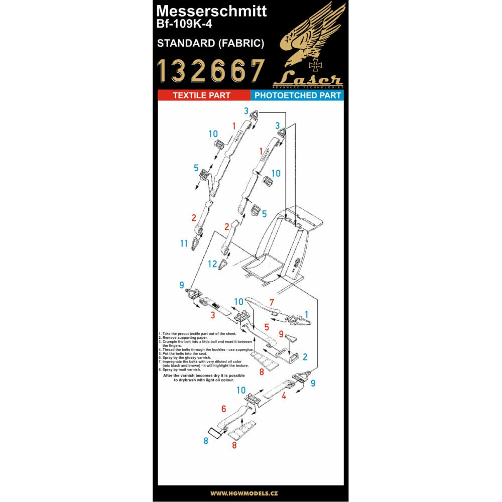 Textilní pásy určené pro model letadla Messerschmitt Bf109K-4 od výrobce Kotare.