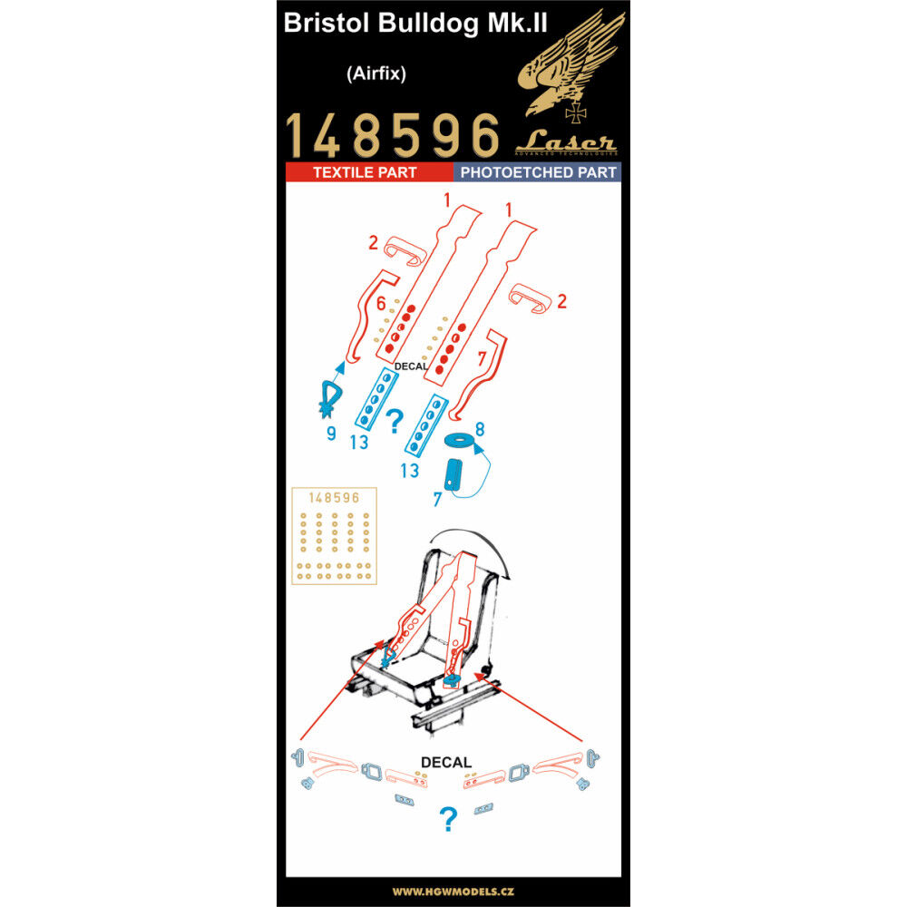 Pásy jsou určené pro model letadla Bristol Bulldog Mk.II od firmy Airfix v měřítku 1/48.