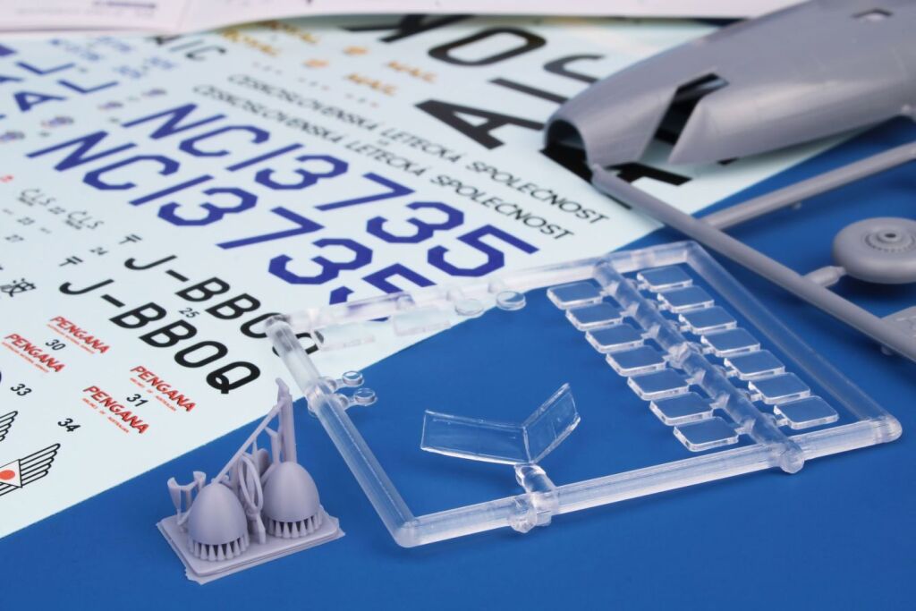 Plastiková stavebnice se sestává ze tří rámečků plastových dílů, rámečku čirých dílů a detailních 3D tištěných dílů. Obtisky nabízí čtyři