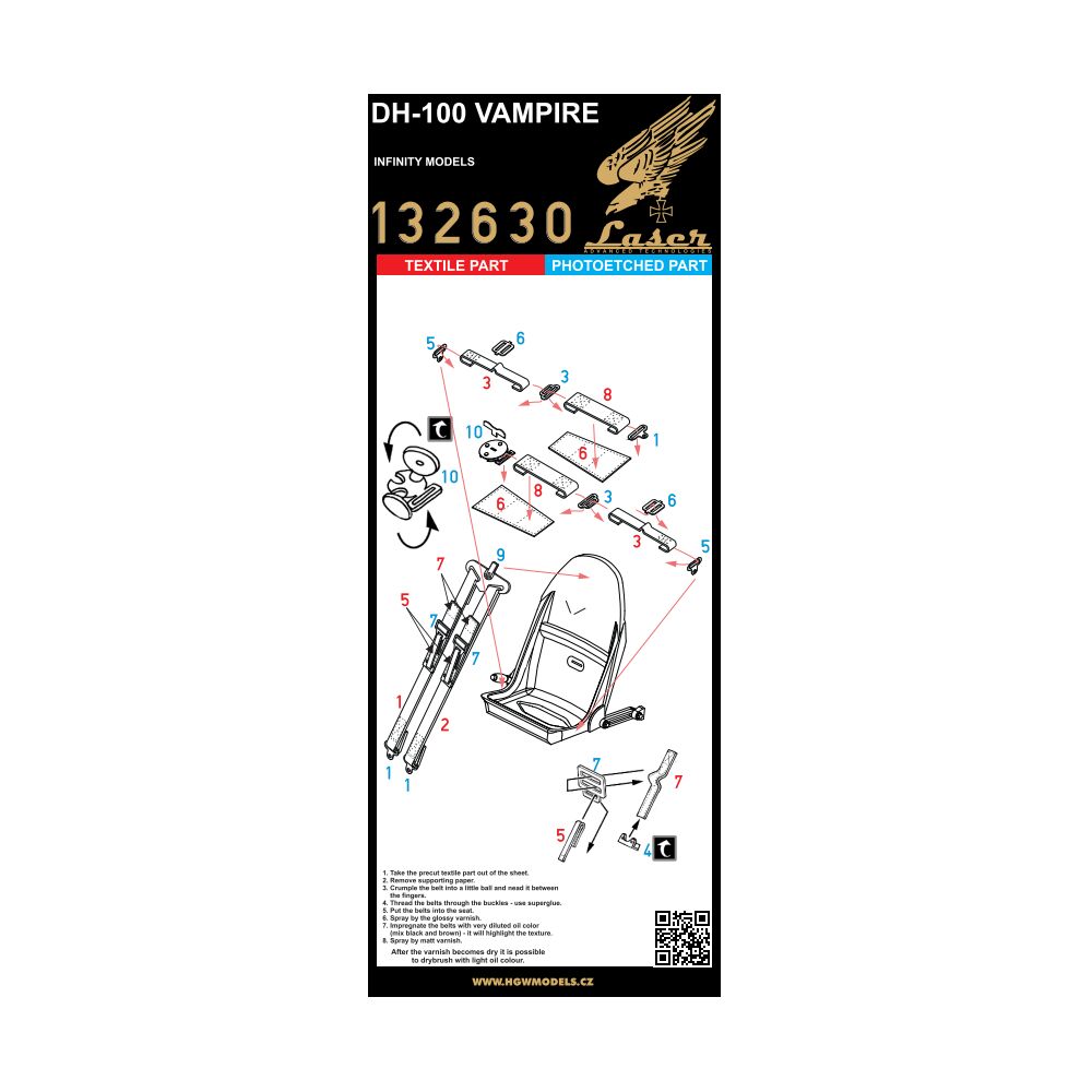 Textilní pásy určené pro model letadla DH-100 VAMPIRE - INFINITY MODELS 1/32. Pásy jsou vyrobené z opravdového textilního mikrovlákna a v kombinaci s přiloženými fotoleptanými přezkami působí v kokpitu velice realisticky.