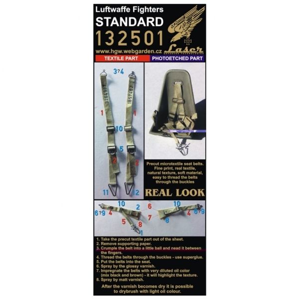 Textilní pásy od HGW Models vyrobené ze skutečného mikrovlákna jsou ideálním doplňkem pro váš plastikový model letadla. V této variantě jsou pásy laserem předřezané a určené pro stavebnice v měřítku 1/32.