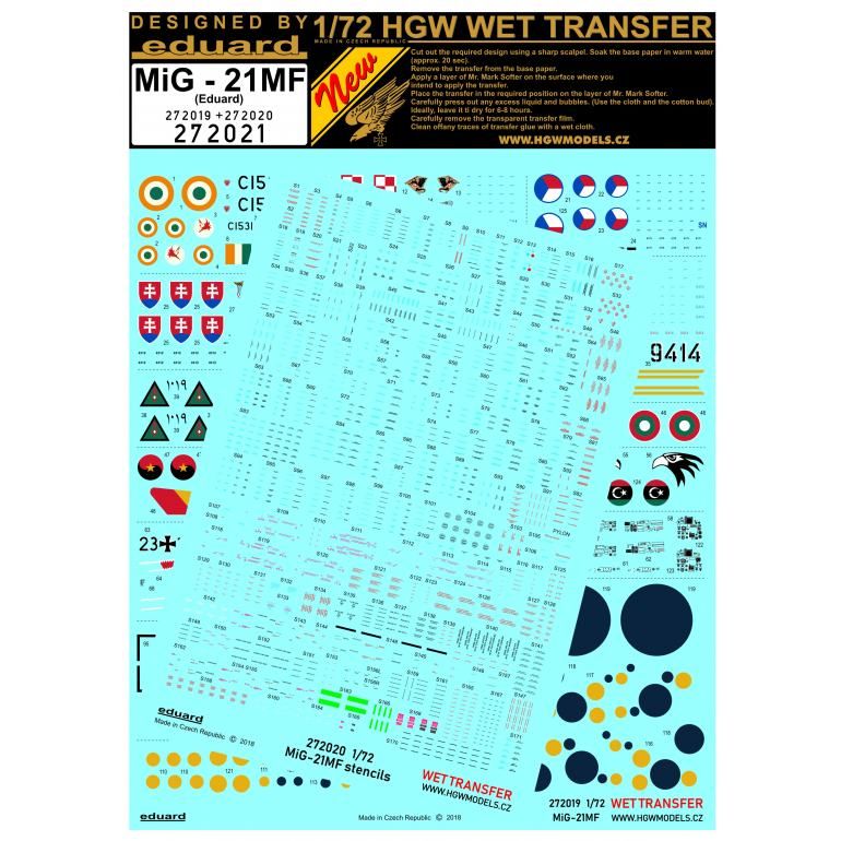 Markingy a popisky pro MiG-21MF v měřítku 1/72