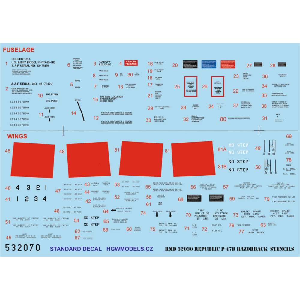 P-47D RAZORBACK POPISKY - 1/32 - 532070