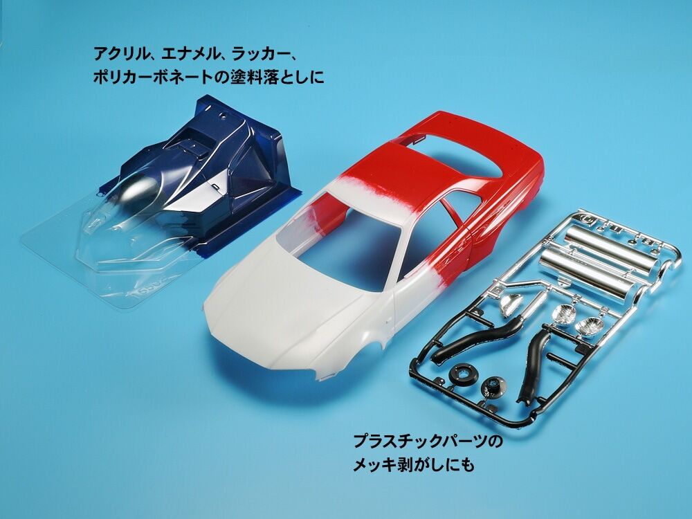 včetně barev určených pro použití na polykarbonátu. Je šetrný k povrchům modelových dílů,