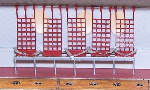 Fotoleptaný barevný plechový aršík. Celkem 23 sedaček s upínacími pásy.