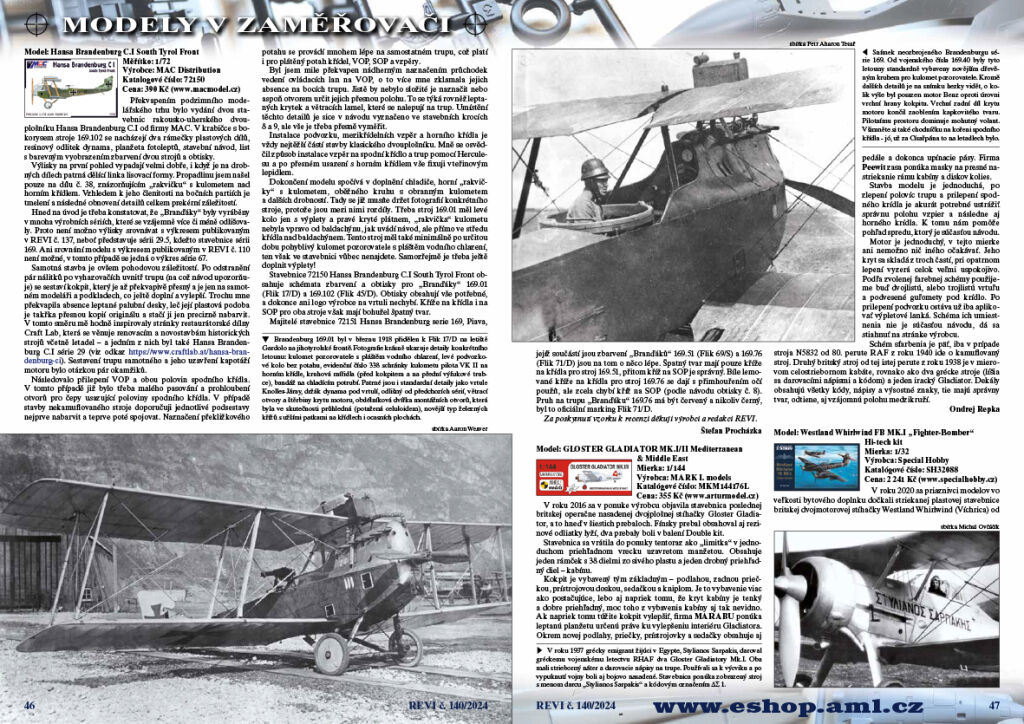 2 Brandenburg C.I (öAlb.) série 29.5 (Dokoncení) 6 Brandenburg C.I (öAlb.) série 29.5 – výkres 1/48 10 Z HISTORIE CESKOSLOVENSKÉ AVIATIKY – UZNÁVANÁ LETADLA AERO (VI) – Finské sovy (1. díl) 14 V posledních hodinách války – Letecký útok na Dalešice 7. 5. 1945 ve svetle archivních dokumentu 24 Srážka MiGu nad Javorníky 28 L-60 Brigadýr OK-LKN 34 První ztráta No. 640 Squadron RAF 40 První válecná havárie letadla Luftwaffe u Prahy – Tehov u Rícan 17. ríjna 1939 46 Modely v zamerovaci 54 Pristálo na redakcním stole 56 Recenze – kritika |