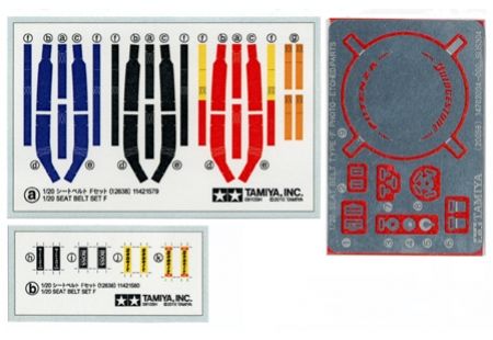 Sada upínacích pásů pro moderní formule v měřítku 1/20. Sada obsahuje upínací pásy z textilní imitace , fotoleptané přezky a loga.