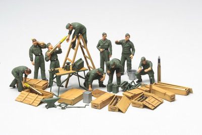 Balení obsahuje německou údržbářskou jednotku a doplňky. Obsahuje 9 figurek v měřítku 1/48.