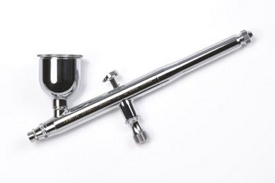 Dvojčinná stříkací pistole s tryskou 0,3mm. Možnost stříkaní linek 1mm nádobka na barvu obsah 7ml Ideální pro stříkaní modelů všech měřítek Kvalitní kovové pochromované provedení. Výrobek vyroben v Japonsku.