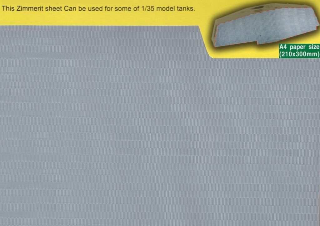 Plastová destička o velikosti A4 s vytvořeným Zimmeritem v měřítku 1/35. Pro nařezání použijte ...
